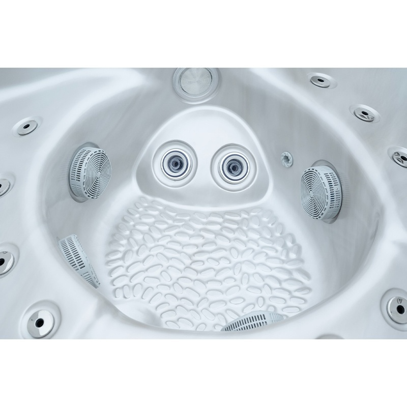 Wyrafinowane wykończenie w kolorze biała perła w połączeniu z stylową obudową antracytową nadaje całości ekskluzywny charakter. Przestronne wnętrze o średnicy 200 cm zapewnia wygodę aż dla 7 osób, tworząc idealne miejsce do relaksu z rodziną lub przyjaciółmi.