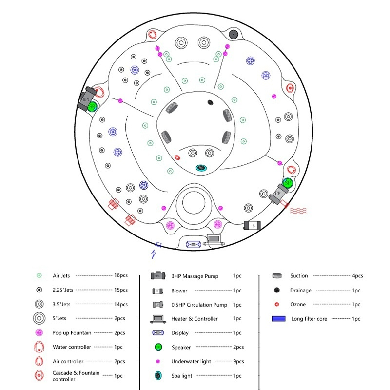 - 47 dysz zapewniających kompleksowy hydromasaż