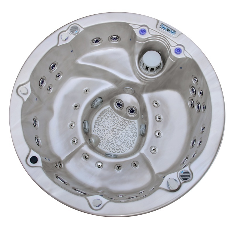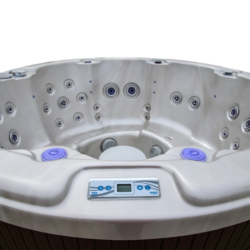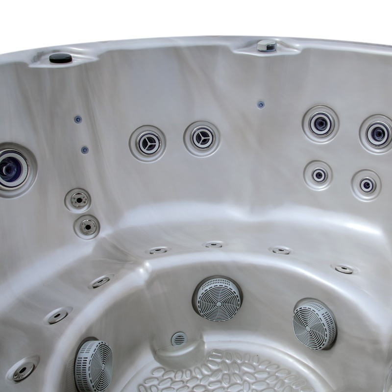 Wyrafinowane wykończenie w kolorze cappucino perła w połączeniu z stylową obudową antracytową nadaje całości ekskluzywny charakter. Przestronne wnętrze o średnicy 200 cm zapewnia wygodę aż dla 7 osób, tworząc idealne miejsce do relaksu z rodziną lub przyjaciółmi.