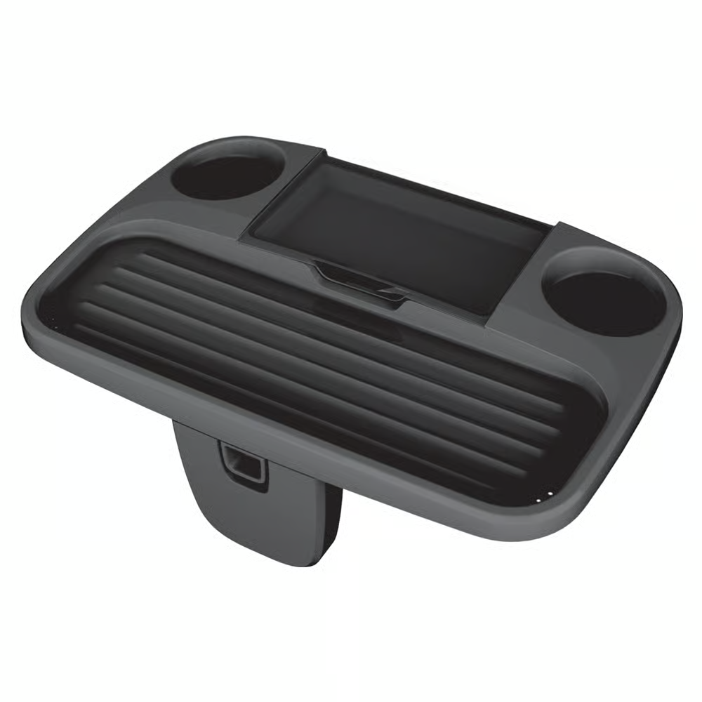 Bezpieczny i wszechstronny stolik z dwoma uchwytami na kubki, półką przeciwpślizgową (z rowkami) oraz specjalną wodoodporną sekcją do przechowywania przedmiotów, takich jak telefony komórkowe. Otwórz pokrywę i użyj jako podstawki pod książkę lub tablet. Pasuje do większości spa i ścian wanien z hydromasażem.