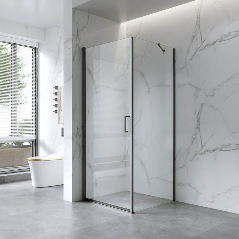 Kabina prysznicowa o wymiarach 80×80×195 cm, idealna do nowoczesnych i klasycznych łazienek. Przejrzyste szkło hartowane 6 mm oraz czarne aluminiowe profile tworzą elegancje i bezpieczne rozwiązanie. Zawias obrotowy oraz reling zapewniają wygodę użytkowania. Kabina przeznaczona jest do montażu na płytkach – bez brodzika.
