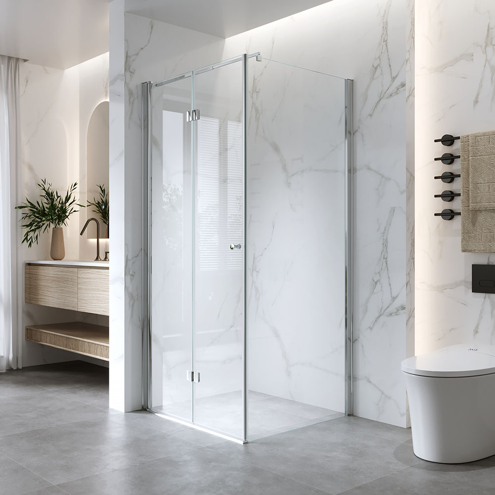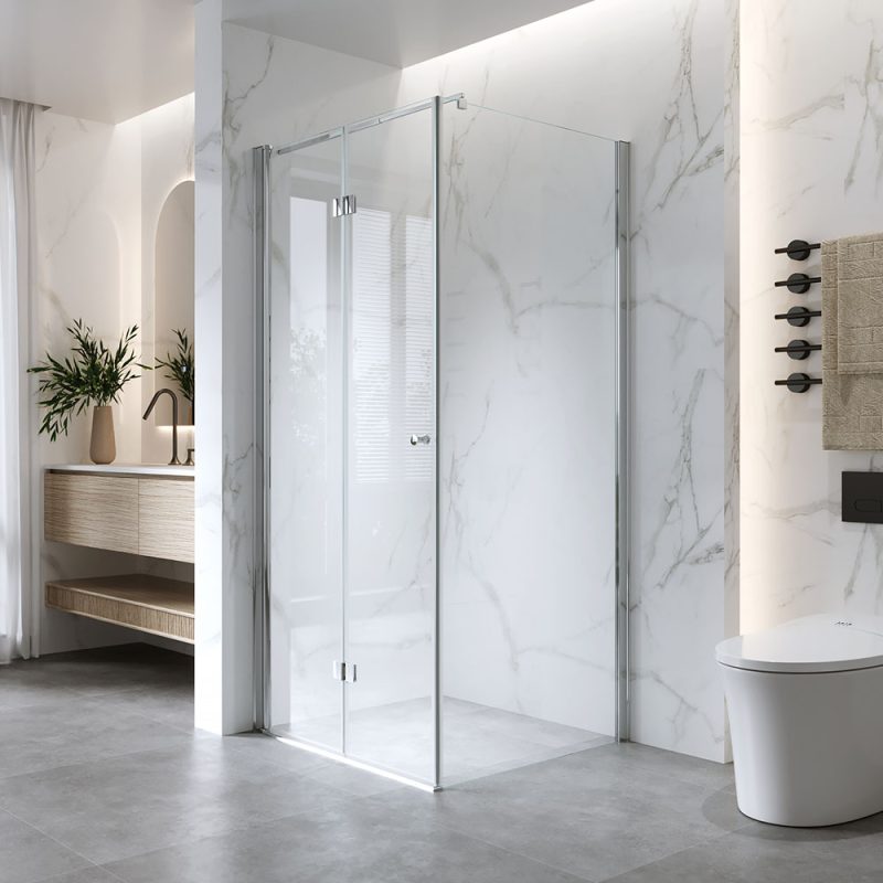 Nowoczesna kabina prysznicowa o wymiarach 80x80x195 cm, zaprojektowana z myślą o wygodzie i elegancji w każdej łazience. Wykonana z bezpiecznego szkła hartowanego o grubości 6 mm, z powłoką ułatwiającą czyszczenie. Składana konstrukcja z dwuskrzydłowym mechanizmem typu harmonijkowego oparta na zawiasach obrotowych gwarantuje maksymalną oszczędność miejsca i komfort użytkowania. Kwadratowy kształt oraz chromowane profile idealnie pasują do klasycznych i nowoczesnych wnętrz. Kabina przeznaczona jest do montażu na płytkach – bez brodzika.