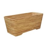 Wanna wolnostojąca o nowoczesnym, prostokątnym kształcie zapewnia komfort podczas siedzącej lub półleżącej kąpieli. Wykonana z wysokiej jakości drewna odpornego na wilgoć i temperaturę, zachowuje trwałość oraz naturalny, przyjemny wygląd. Dolna część wanny posiada falowaną konstrukcję, która ogranicza kontakt z podłożem i zmniejsza ryzyko uszkodzeń.