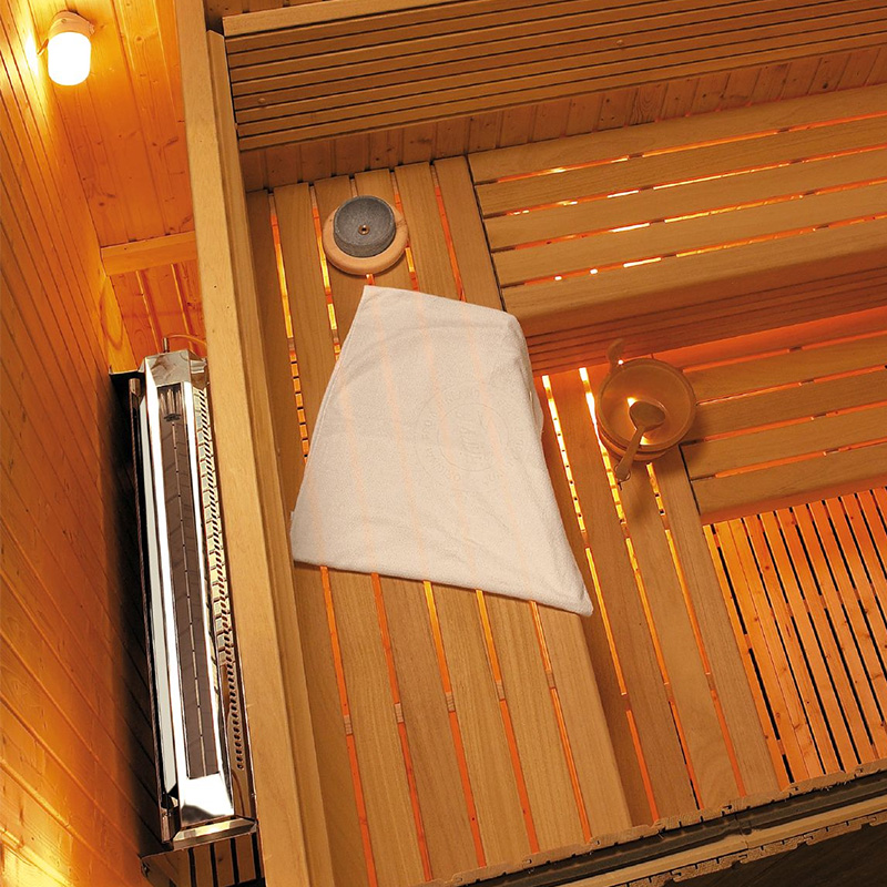 System ten pozwala uzyskać komfortową atmosferę zarówno w saunie suchej, jak i przy zwiększonej wilgotności.