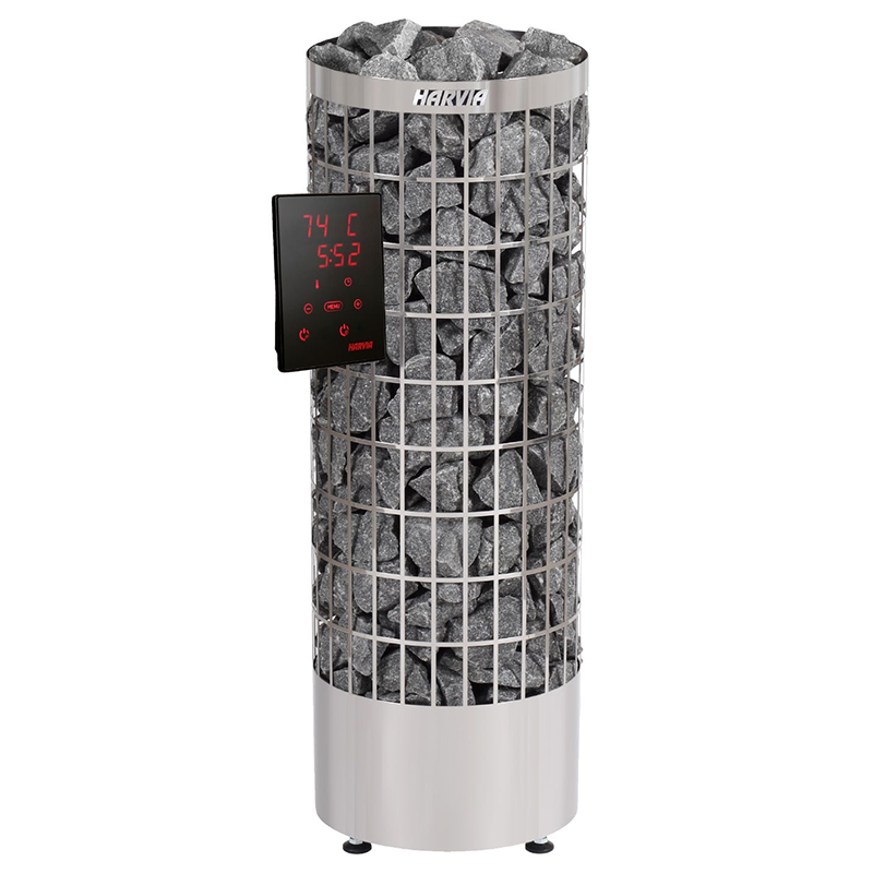 W zestawie znajduje się cyfrowy panel sterujący Harvia Xenio. Umożliwia on precyzyjne ustawienie temperatury, czasu działania oraz sterowanie oświetleniem. Panel można zamontować wewnątrz lub na zewnątrz sauny.