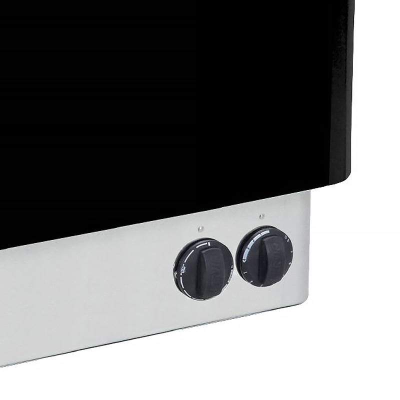 Dzięki wbudowanemu manualnemu panelowi sterowania obsługa pieca jest bardzo prosta i intuicyjna – wystarczy ustawić temperaturę oraz czas pracy za pomocą pokręteł znajdujących się w dolnej części urządzenia.