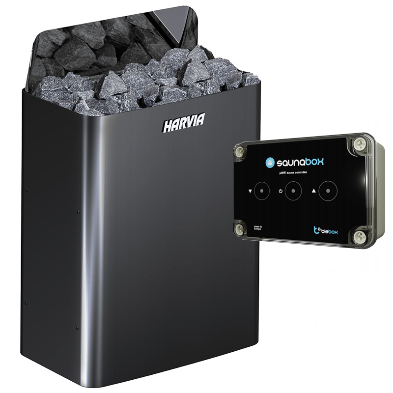 Zestaw do sauny : Piec elektryczny do sauny Harvia The Wall SW60E Black steel 6 kW + Sterownik BleBox SaunaBox