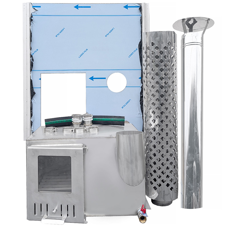 Wewnętrzny piec do spa ogrodowego wykonany z wysokiej jakości stali nierdzewnej AISI 304 to kompaktowe i efektywne rozwiązanie do podgrzewania wody bez potrzeby stosowania zewnętrznych urządzeń grzewczych.