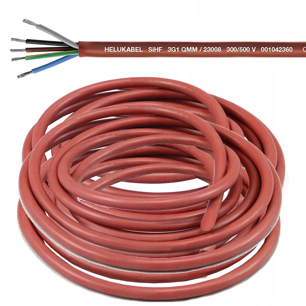 Przewód silikonowy SiHF 5×2,5 mm – 5-żyłowy, odporny na wysoką temperaturę do pieca sauny | -60°C do +180°C | Bezhalogenowy