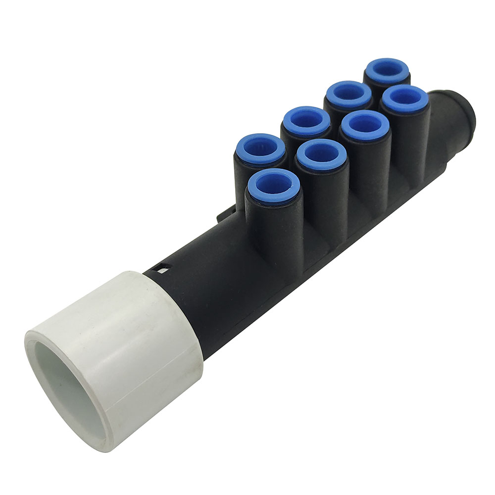 Rozdzielacz do rur powietrza 1″ x 8 wyjść 7 mm, wykonany z PVC. Stosowany w wannach z hydromasażem, wannach ogrodowych, SPA, jacuzzi, basenach itd.