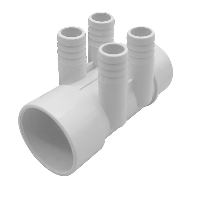 Rozdzielacz do rur wodnych 1,5″ x 4 wyjścia 3/4″, wykonany z PVC. Stosowany w wannach z hydromasażem, wannach ogrodowych, SPA, jacuzzi, basenach itd.