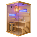 Sauna fińska 1–2 osobowa z piecem Harvia 3,5 kW | jodła kanadyjska | koloroterapia | Bluetooth | lampy solne