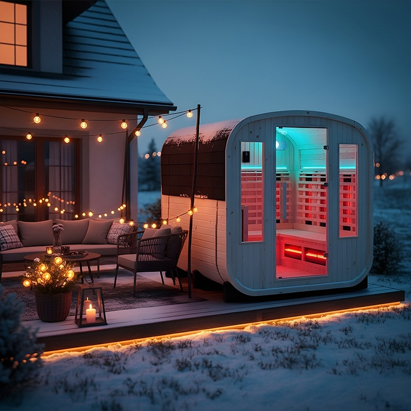 Sauna ogrodowa 2w1 fińska + infrared VANTA dla 4–6 osób z koloroterapią – 200×200 cm