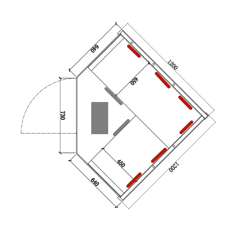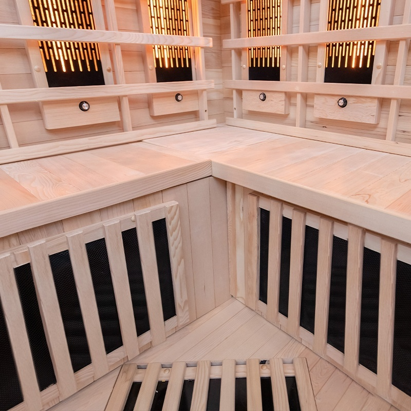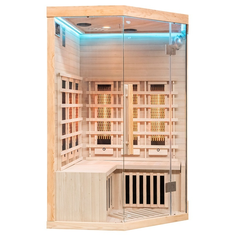 Sauna sucha infrared niskotemperaturowa z 9 grzejnikami – dla 2-3 osób, 120×120 cm, z drewna jodły kanadyjskiej