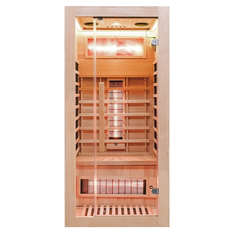 Kompaktowe wymiary oraz staranne wykonanie z naturalnego drewna jodły kanadyjskiej (hemlock) czynią z tej sauny idealne rozwiązanie do mieszkań, domów jednorodzinnych, siłowni czy gabinetów odnowy biologicznej. Wnętrze wyposażone zostało w oparcie, drewnianą rączkę do drzwi, wentylację sufitową oraz praktyczne oświetlenie.