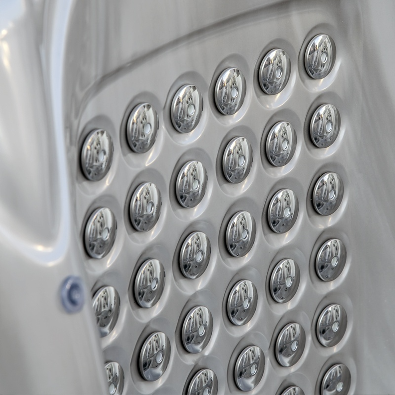 Różnorodność dysz umożliwia zarówno intensywny masaż głęboki, jak i delikatne odprężenie.