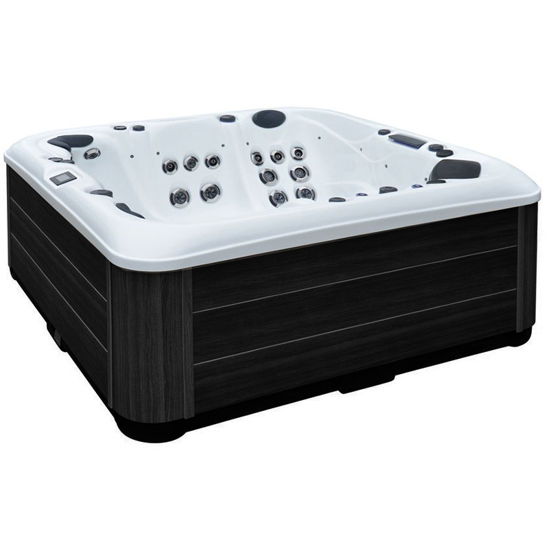 Nowoczesne, ekskluzywne spa ogrodowe o wymiarach 230×230 cm wykonane zostało z najwyższej jakości materiałów. Stylowe połączenie niecki w kolorze Białej Perły i eleganckiej czarnej obudowy tworzy wyjątkową estetykę, która wzbogaci każdą przestrzeń wypoczynkową.