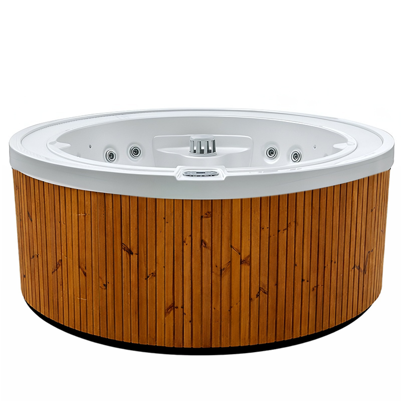 Spa ogrodowe 61 dysz – 7 osobowe, okrągłe, akryl Biała Perła, obudowa Termodrewno 240 x 240 cm
