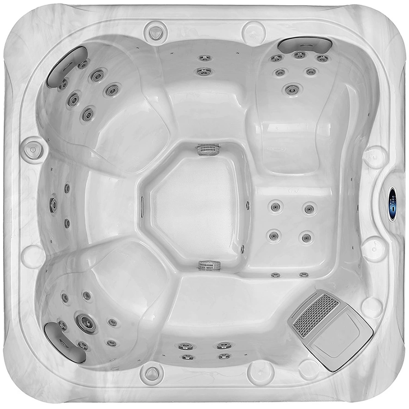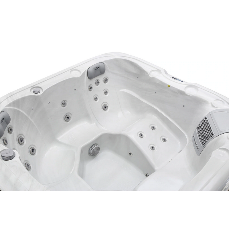 Spa ogrodowe 34-dyszowe RS to przestronny model 6-osobowy, który łączy dużą funkcjonalność z kompaktową bryłą 200 × 200 cm. Zaprojektowane z myślą o spotkaniach towarzyskich, zapewnia wygodne siedziska oraz jedną ergonomiczną leżankę, umożliwiając relaks w pozycji półleżącej.