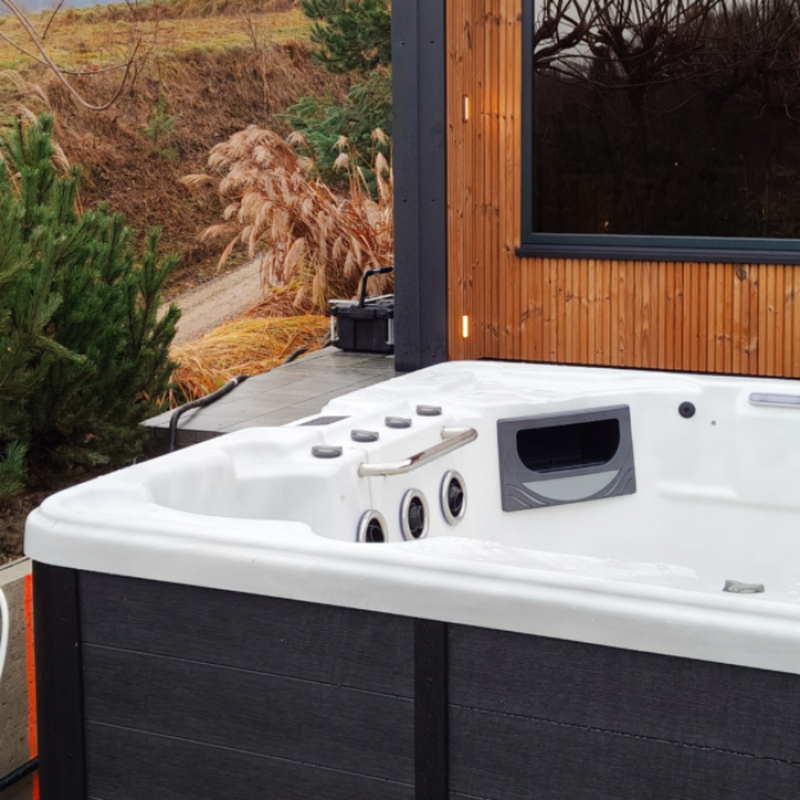 Czystość wody w spa ogrodowym zapewnia wydajny system filtracji wspierany przez ozonator, który skutecznie eliminuje bakterie i zanieczyszczenia. Dzięki temu woda pozostaje klarowna i bezpieczna dla użytkowników.