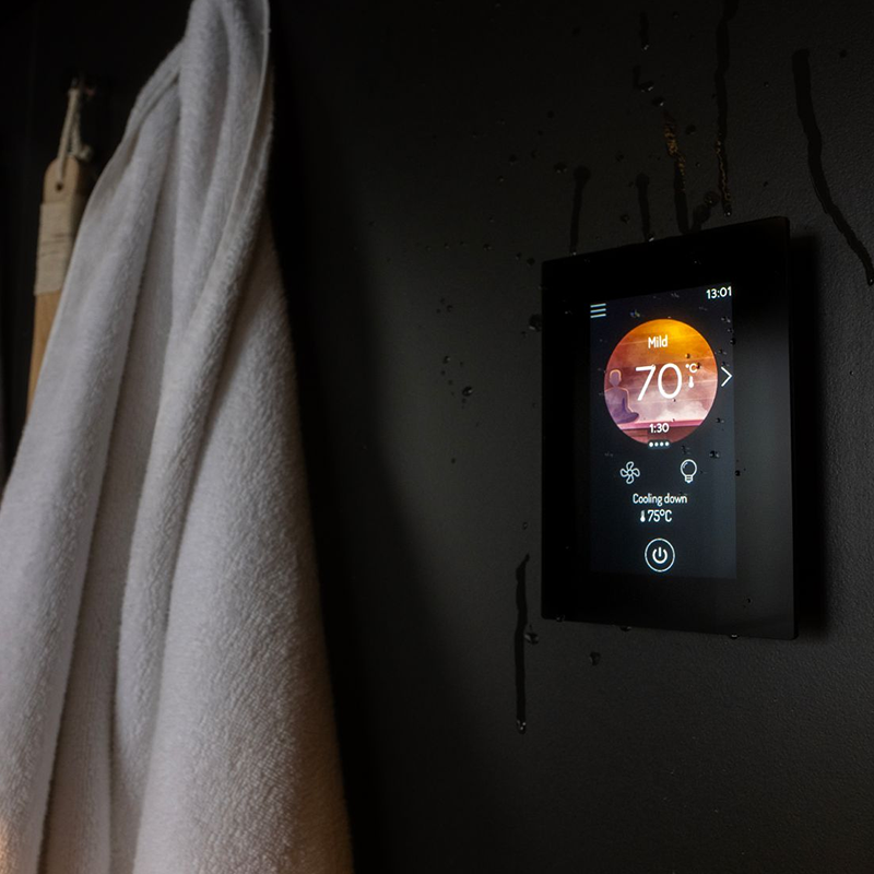 - Sterowanie oświetleniem i wentylacją – pełna kontrola klimatu w saunie