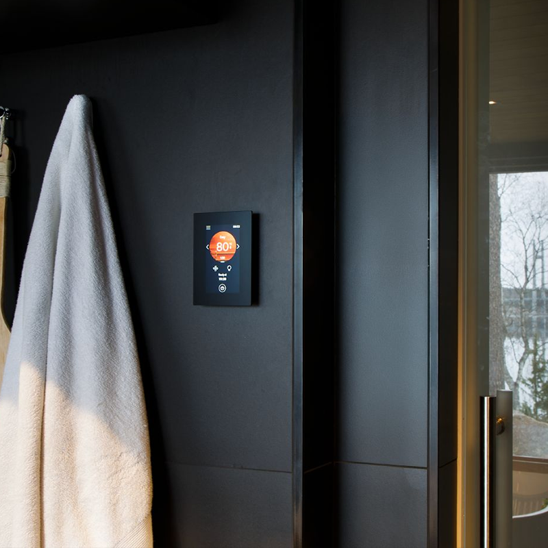 Sterownik umożliwia zarządzanie nie tylko piecem, ale także dodatkowymi elementami wyposażenia, takimi jak oświetlenie i wentylacja. To pozwala stworzyć idealną atmosferę relaksu – od temperatury, przez światło, aż po cyrkulację powietrza. Możliwość montażu panelu zarówno natynkowo, jak i podtynkowo oraz instalacji w różnych pomieszczeniach daje dużą swobodę aranżacyjną.