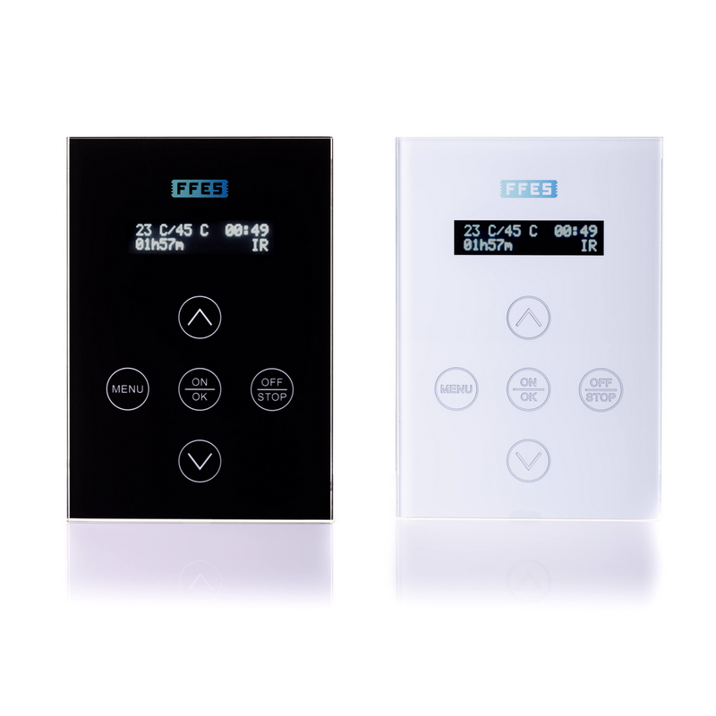 Nowoczesny sterownik FFES z panelem sterującym seria ZXX to zaawansowane rozwiązanie do precyzyjnego zarządzania pracą sauny. System został zaprojektowany z myślą o wygodzie użytkownika, bezpieczeństwie instalacji oraz eleganckim wyglądzie, który doskonale komponuje się z nowoczesnymi wnętrzami saun.