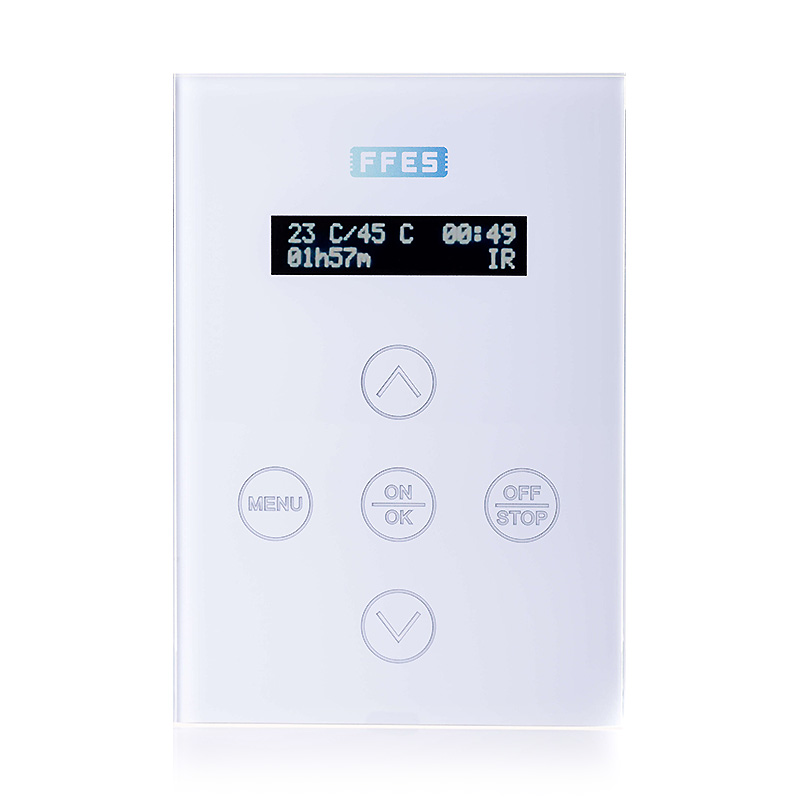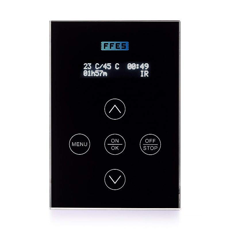 Sterownik FFES z panelem seria ZXX przeznaczony jest do sterowania pracą sauny, w tym regulacji temperatury oraz czasu grzania. Sprawdzi się zarówno w domowych saunach, jak i w obiektach SPA, hotelach czy strefach wellness.