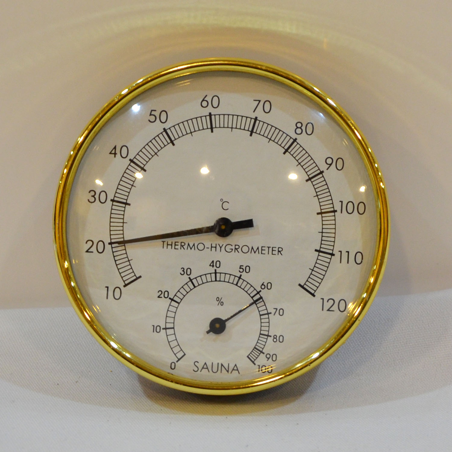 Pokazuje aktualną temperaturę w saunie oraz wilgotność powietrza