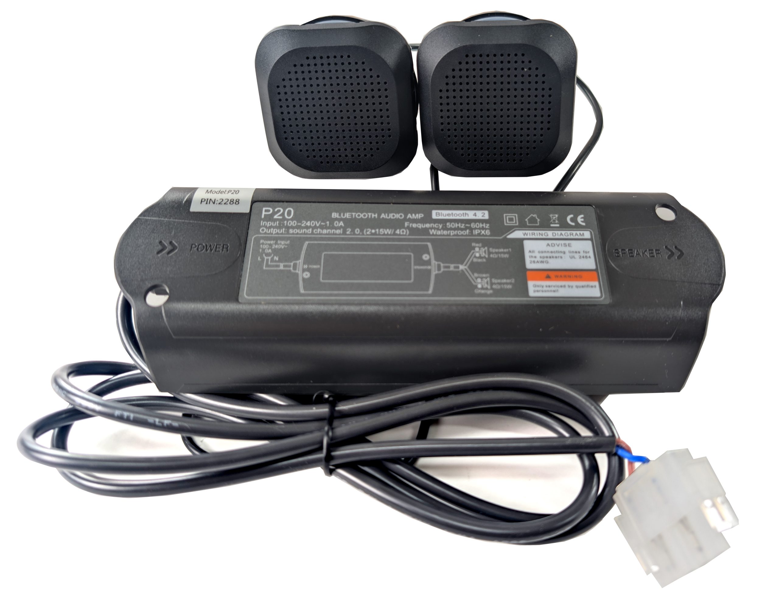 Nowoczesny i kompaktowy zestaw audio oparty na wzmacniaczu Bluetooth P20 to praktyczne rozwiązanie do stref relaksu, takich jak spa ogrodowe, sauna, wanna ogrodowa czy inne przestrzenie o podwyższonej wilgotności.