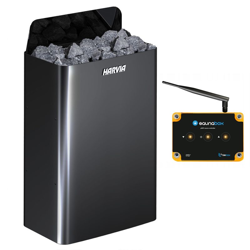 Zestaw do sauny: Piec elektryczny 9 kW Harvia The Wall SW90E Black Steel + Sterownik WiFi BleBox SaunaBox PRO z anteną