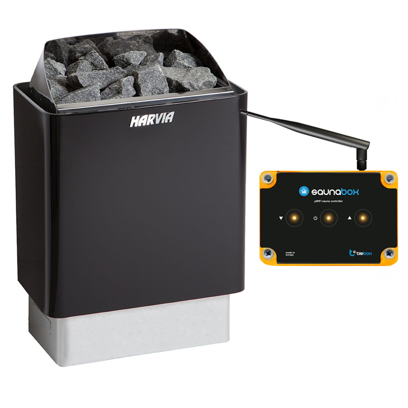 Zestaw do sauny: piec elektryczny Harvia KIP45E Black 4,5 kW + sterownik BleBox SaunaBox PRO WiFi